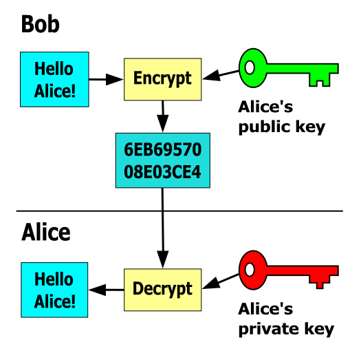 - Alice encrypts a message with what she believes to be Bob’s key, thinking that only Bob can read it:
